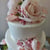 Torta a 3 piani rivestita in fommy, con fiori finti e decorazioni in porcellana fredda